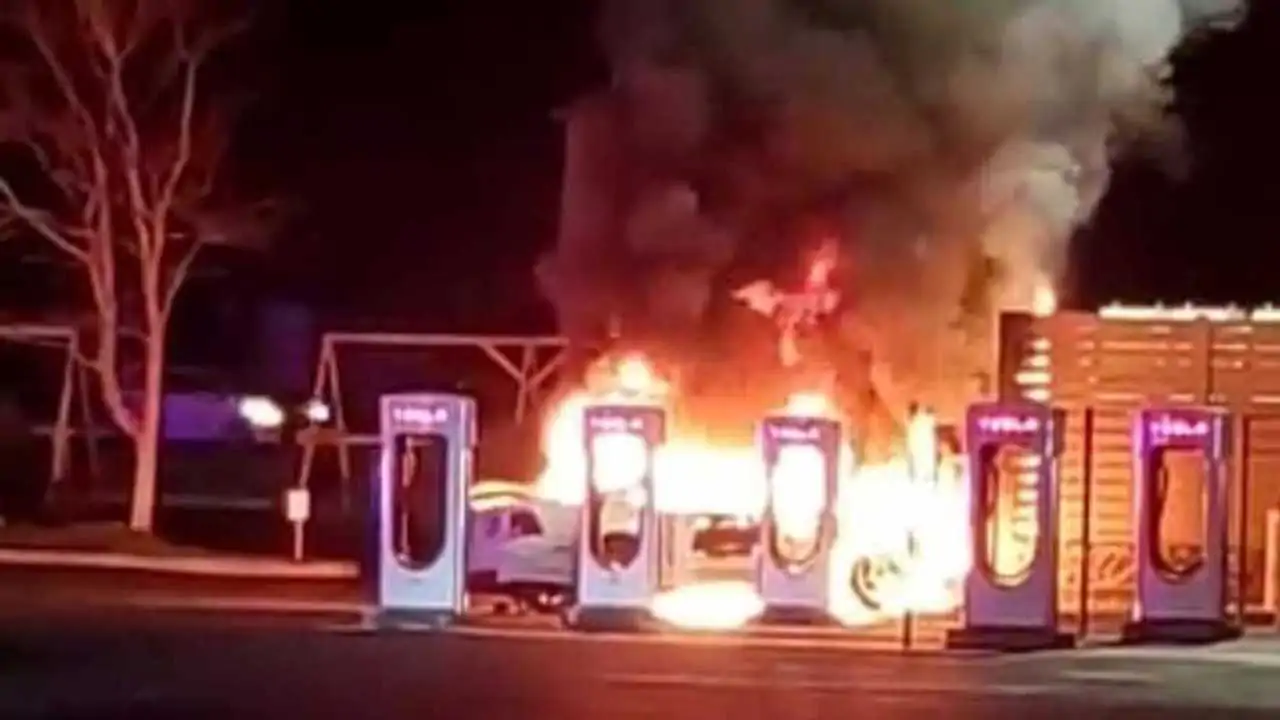 Tesla Supercharger in fiamme (per colpa di un'auto a benzina)