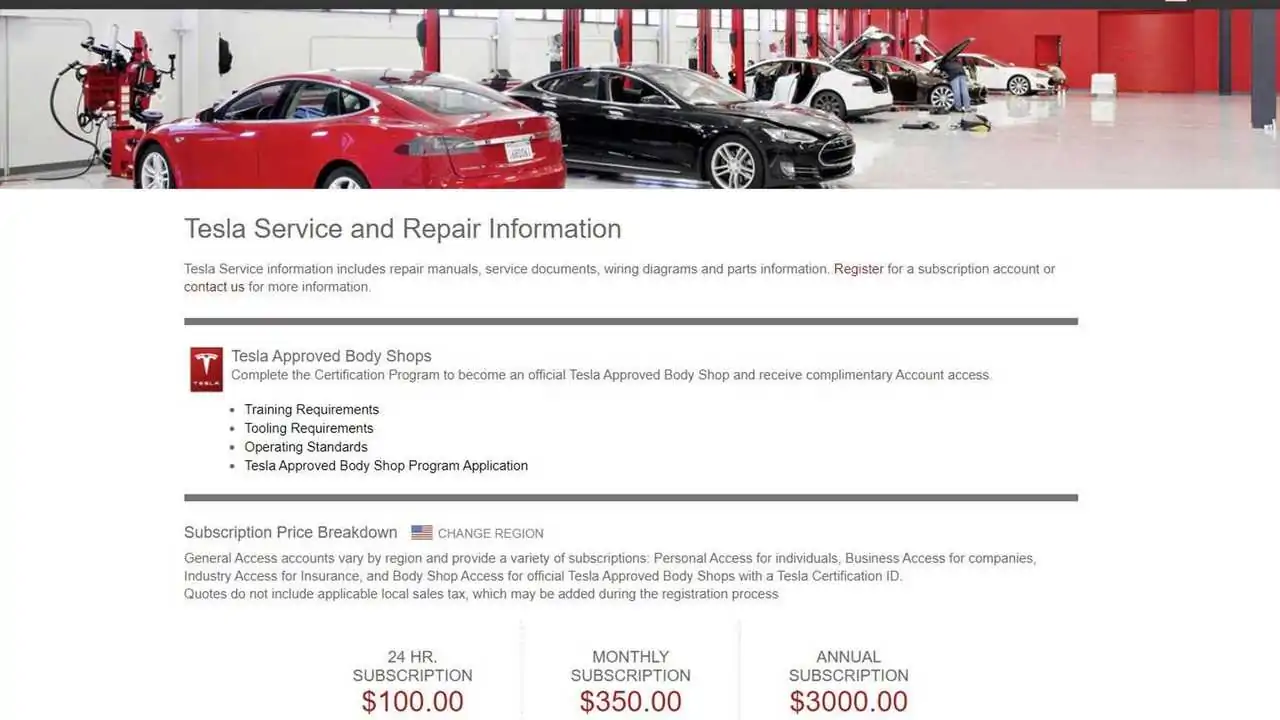Come detto, tutte le informazioni sulla manutenzione, l'assistenza e la diagnostica dei modelli Tesla erano già disponibili, ma a pagamento. Bastava registrarsi sul sito service.teslamotors.com per avere accesso a tutti questi dati alla "modica" cifra di 100 dollari l'ora, oppure 350 dollari per un mese e 3.000 dollari per il pass annuale.