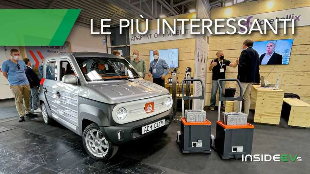 A quest’ultima categoria appartiene sicuramente la Adaptive City Mobility, azienda che all’IAA Mobility ha portato una vetturetta elettrica di dimensioni compatte dotata di batterie… estraibili. Alcune sono posizionate davanti, altre dietro. Si staccano e si portano a casa, per attaccarle alla presa domestica lasciando l’auto comodamente parcheggiata.