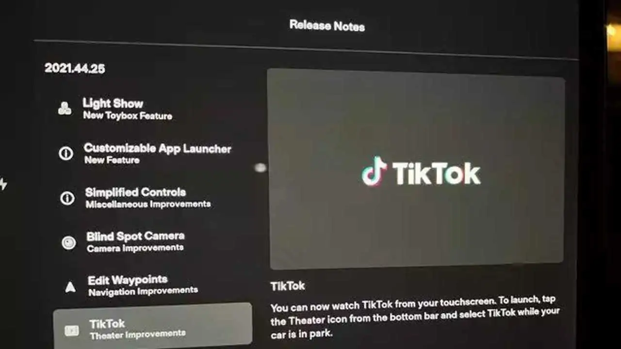 Il software passa alla versione 2021.44.25 e comprende TikTok, Light Show, personalizzazione del menu e molto altro