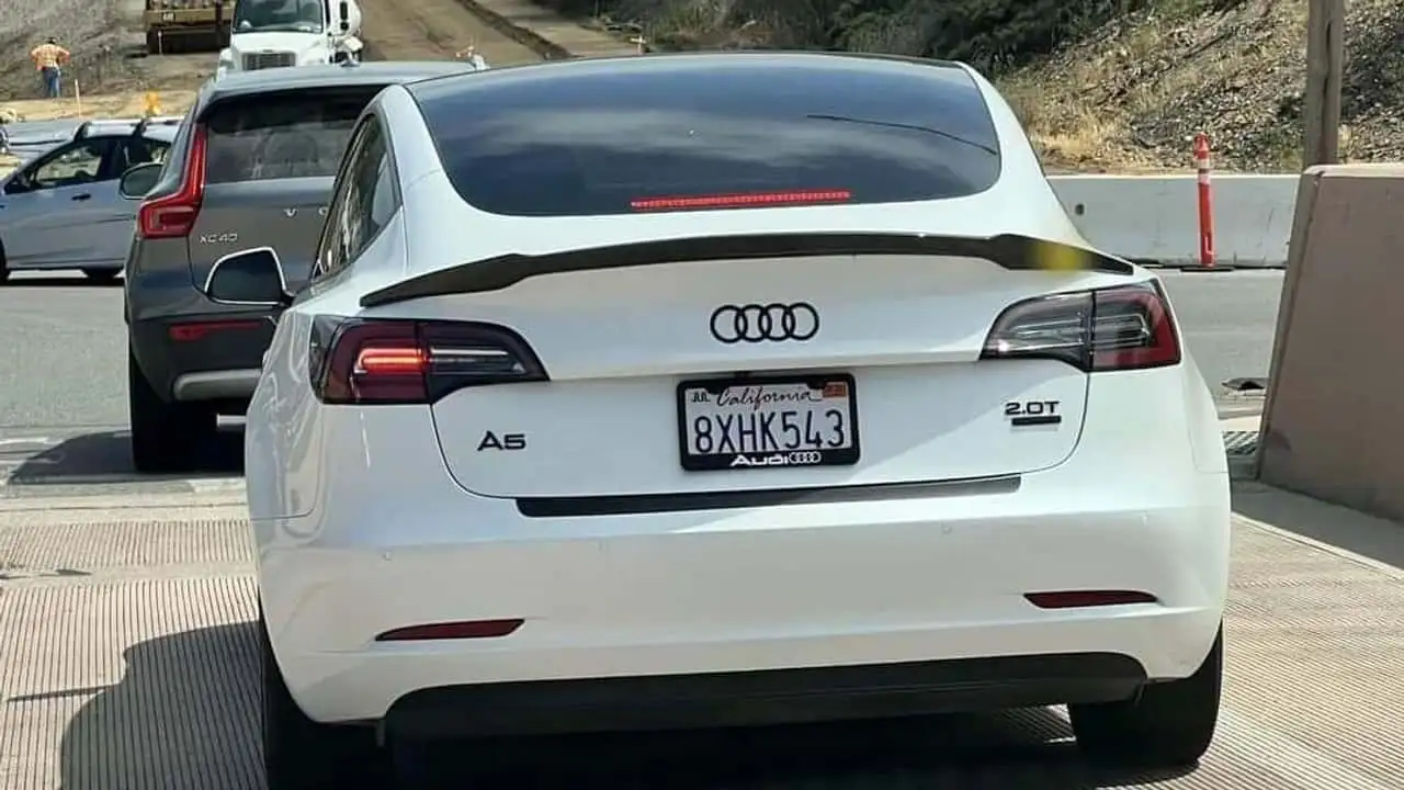 Tra le iniziative più curiose, quelle che vedono auto elettriche Tesla con loghi di altri brand ben in vista su cofano e portellone. Negli Stati Uniti non è più così raro incrociare una Model 3 con i Quattro Anelli di Audi al posto della classica T. Sono state avvistate anche “Tesla-Mazda” e “Tesla-Honda”. Ma c’è chi si è spinto oltre.