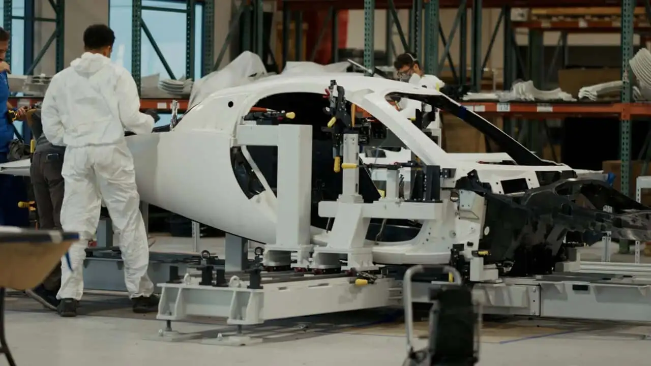 Aptera sceglie un processo di assemblaggio tradizionale, in cui i telai passano attraverso diverse stazioni per essere equipaggiati