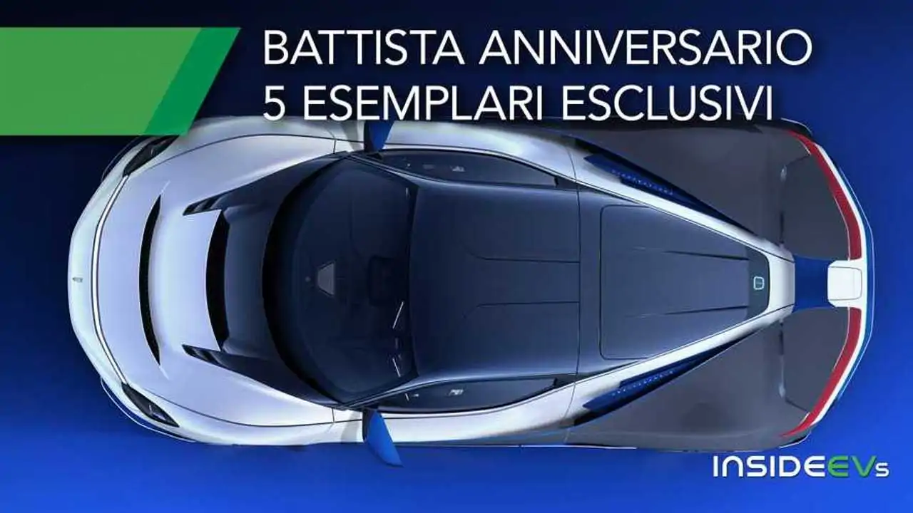 Si prosegue con gli alettoni posteriori con la firma Anniversario, ma sopratutto con una livrea a doppia tinta realizzata a mano. Si distingue anche per interni con dettagli su misura che includono i sedili rifiniti in pelle nera ecosostenibile ed Alcantara. Interni, che mantengono la stessa disposizione dei monitor e la stessa corona del volante, sviluppato con un’apposita ergonomia a sviluppo verticale. Meccanicamente sono stati confermati i dati della Battista: 1900 CV di potenza massima, 2300 Nm, 350 chilometri orari (autolimitati), da 0 a 100 km/h in meno di 2 secondi. Il pacco batterie arriva a quota 120 kWh, con circa 500 chilometri dichiarati come autonomia.